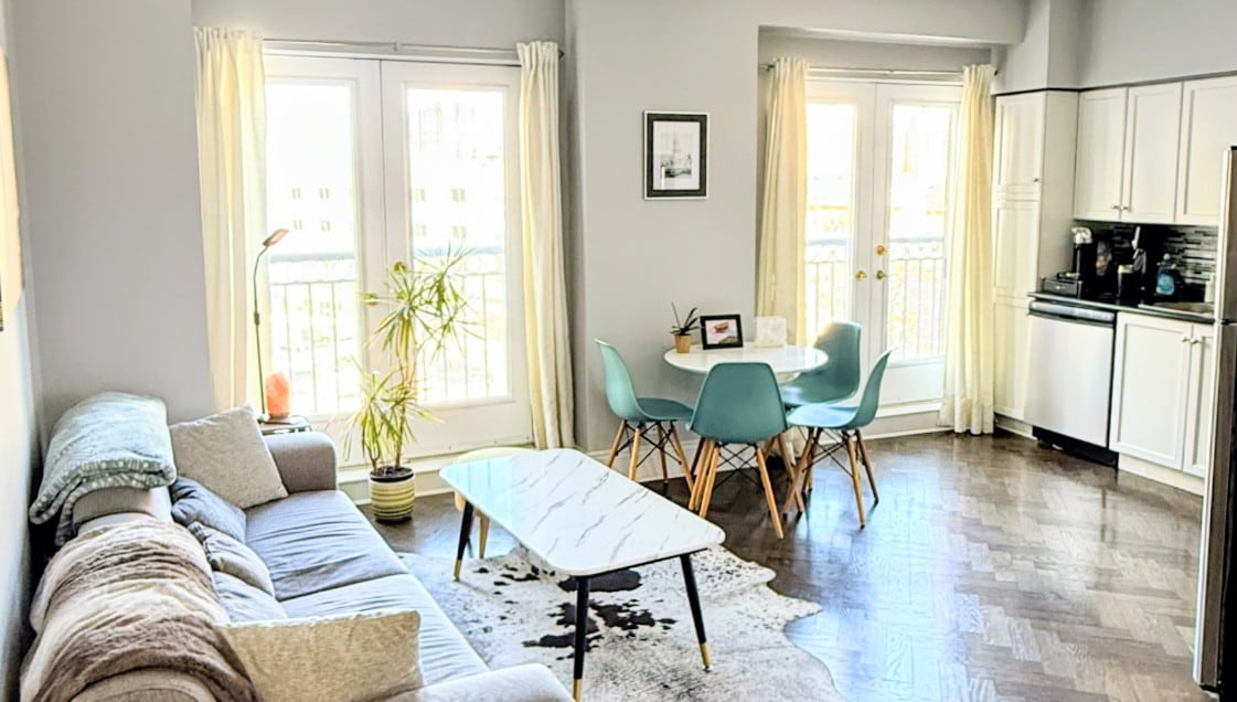 Explore historic Old Town Toronto from this modern 1-bedroom condo. Located steps from St. Lawrence Market & the Distillery District, this stylish space is your perfect urban retreat. Enjoy a stunning rooftop deck with BBQs, a fitness room, and a chic party lounge. The unit features a fully equipped kitchen, comfortable living area, and in-suite laundry. Ideal for couples or solo travelers looking to experience the best of the city, with dining, shopping, and transit at your doorstep.
